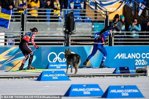 周三,米兰–科尔蒂纳冬奥会女子越野滑雪团体资格赛正在如火如荼地进行中。正当选手们准备最后的几十米冲刺时,一道灰黑色的身影突然从赛道边窜了出来!